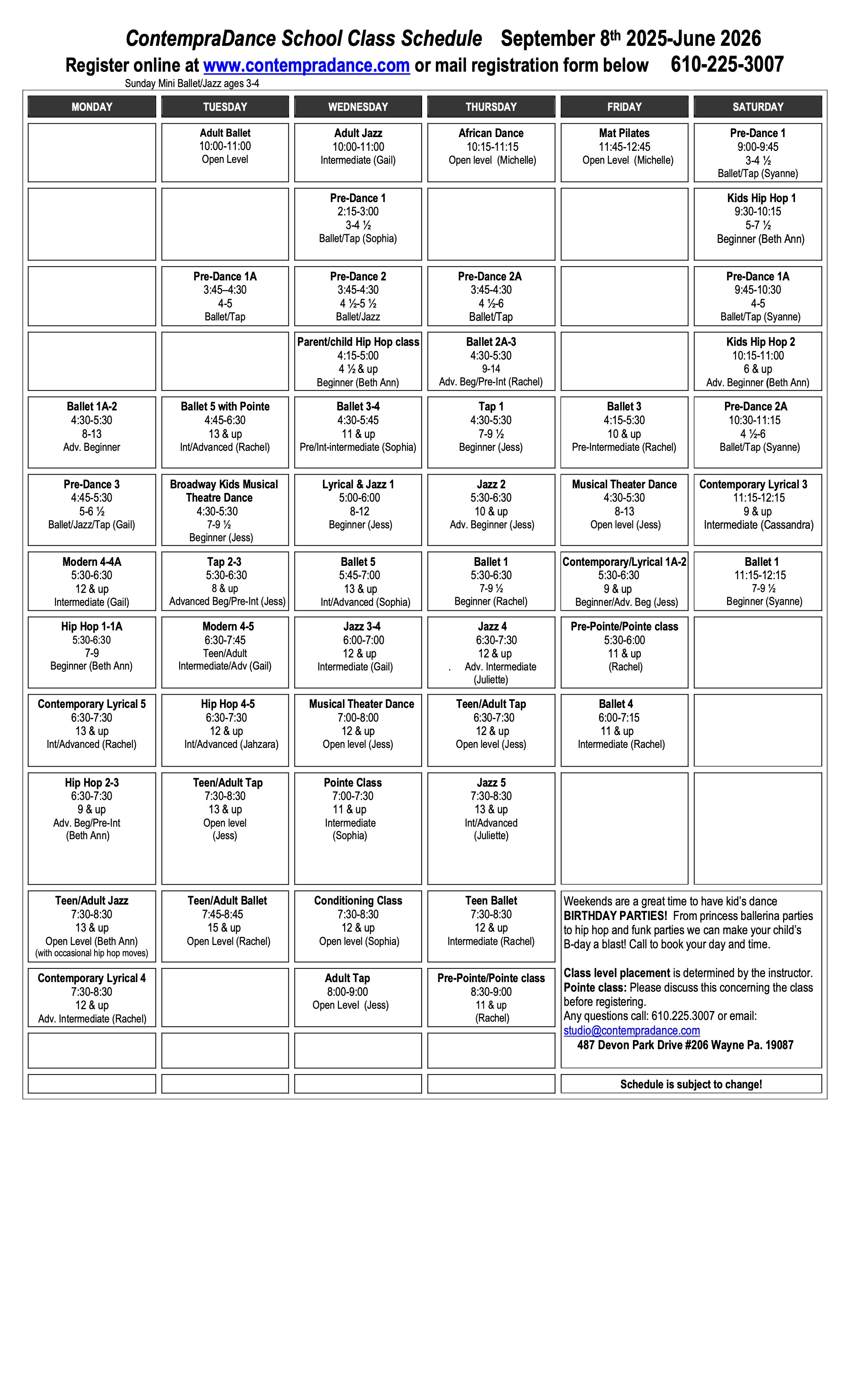 Check out the schedule and join us for a fun-filled summer of dance!